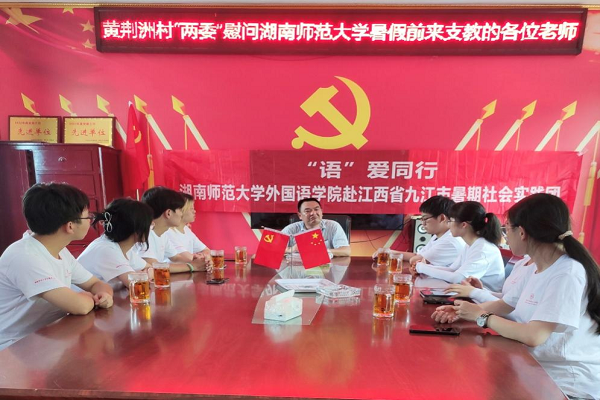 “语”爱同行实践团共分为两支队伍,分别在征村乡黄荆州村和白岭镇温泉村进行实践调研活动。队伍到达实践地后,两村的村干部热情接待实践团,并就暑期教育实践及调研等具体问题开展座谈会,双方就当地的教育问题及乡村振兴事业进行了深入讨论。
