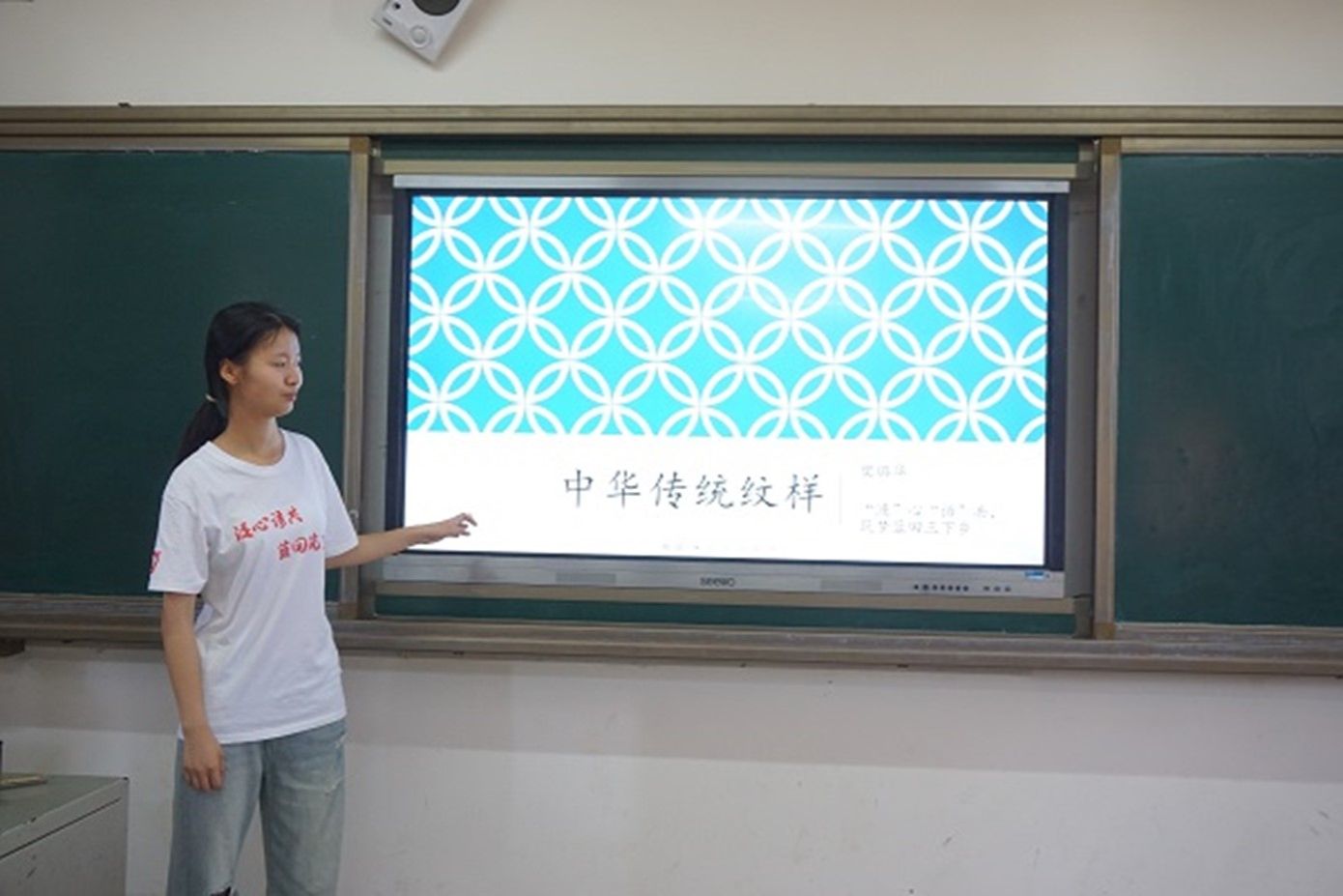 (通讯员 樊璐华 杨柳 袁姝睿)文艺求善,启智润心;向美而行,传统先行。为促进对我国艺术文化形式的了解,发扬民族精神,7月12日上午,九州最新登录网址赴涟源市九州最新登录网址附属三一学校实践团开展“中华传统纹样”美术课。此次课程由实践团成员樊璐华负责。