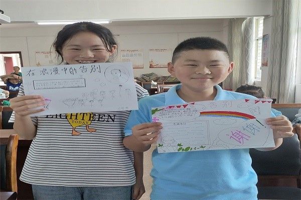 7月17日下午,在温泉村,实践团在温泉村村委的支持下于童心港湾教育基地开展此次告别仪式。告别仪式上,实践团队队员们充分发挥专业优势,组织了一系列娱乐活动,力求让学生们在娱乐身心的同时运用起十四天间所学的外语知识。音标认读、英文歌学习穿插于游戏环节,孩子们在实践团成员们的积极引导下踊跃上台展现自我,将知识充分运用到实践之中。