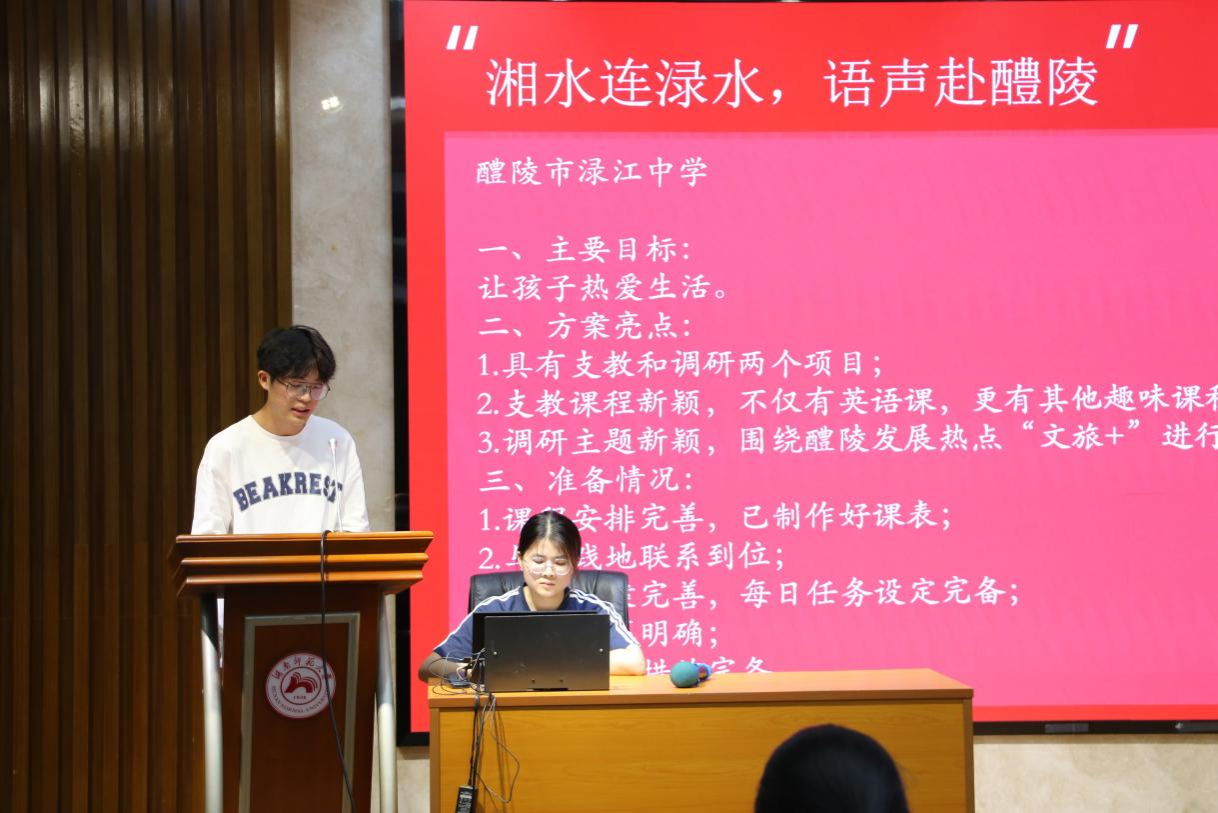 王耀光介绍了今年学院暑期社会实践活动前期组织情况,充分肯定各队伍在队伍组建、实践地联络、课程安排等方面所做的准备以及目前取得的成果,鼓励各队伍围绕乡村外语教育振兴主题,积极申报国家、省级实践专项团队,继续完善方案、积极申报立项,为接下来的实践开展做充分考虑。