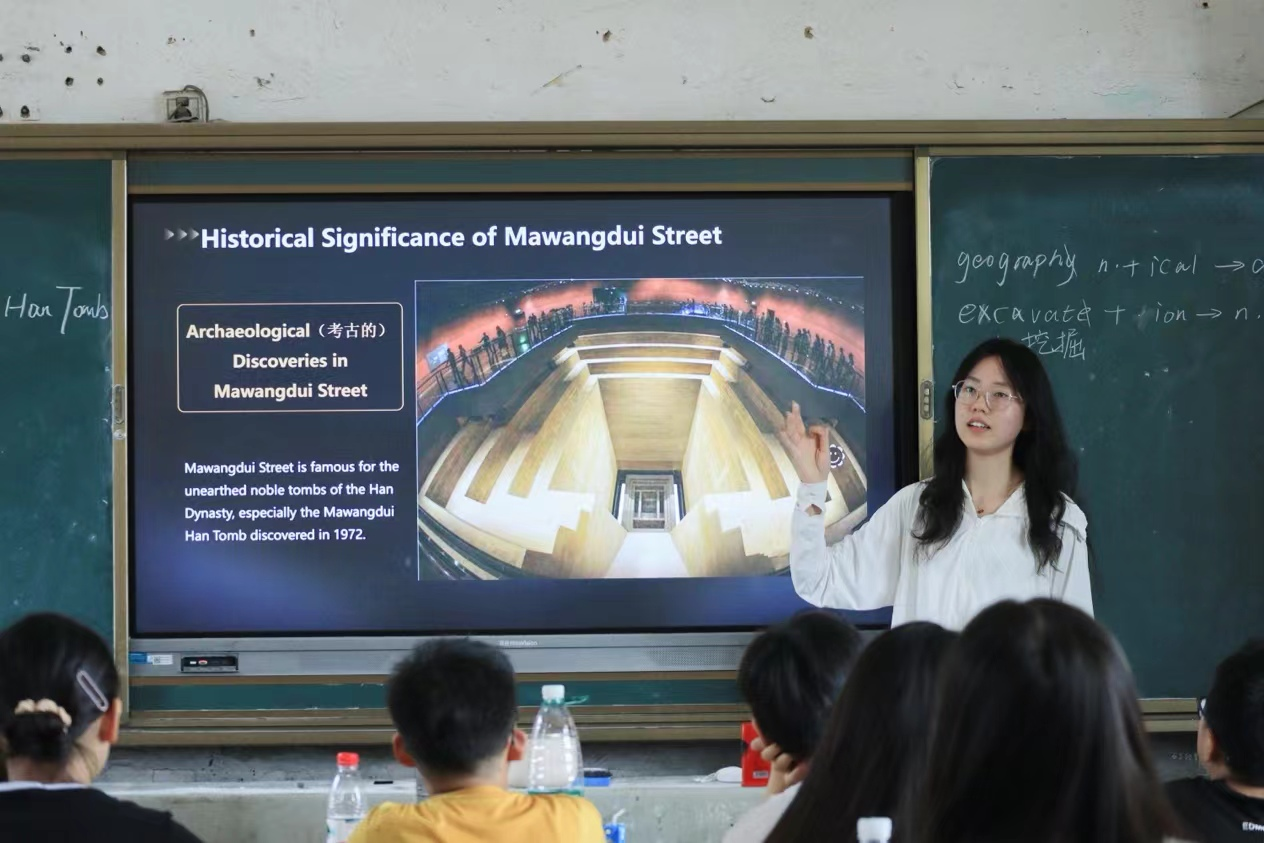“用英语讲中国故事”系列课程根据湖南当地文化特色,结合湖湘精神和红色故事,以独特的辣椒文化为中心。其中,以学生为中心,结合日常生活场景,从辣椒特性与饮食文化逐步引入到红色名人故事,以革命先辈毛泽东、左宗棠的故事为例,将湖湘历史与英语进行融合。这既吸引了学生兴趣,又拓宽了学生的知识视野,实现了师生双方的良性互动。