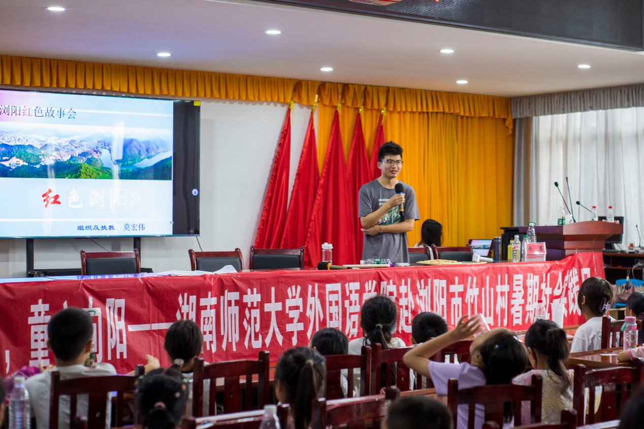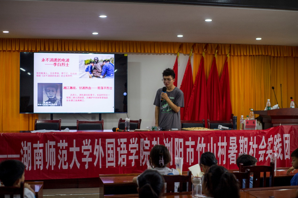 (通讯员 洪菁蔓 杨劼)7月15日下午,九州最新登录网址赴浏阳市竹山村暑期社会实践团在竹山村村部开展了“浏阳红色故事会”课程,本次课程由实践团成员莫宏伟担任主讲人。