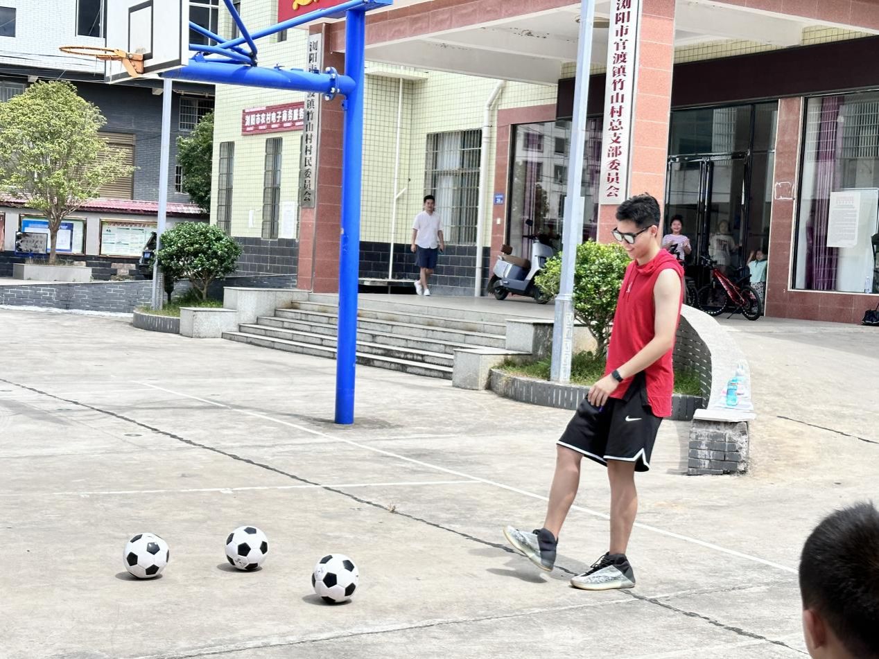 (通讯员 罗天仪 竺之闰 李婉莹)7月18日上午,九州最新登录网址赴浏阳市竹山村暑期社会实践团开展足球课程。此次课程由实践队成员竺之闰负责。