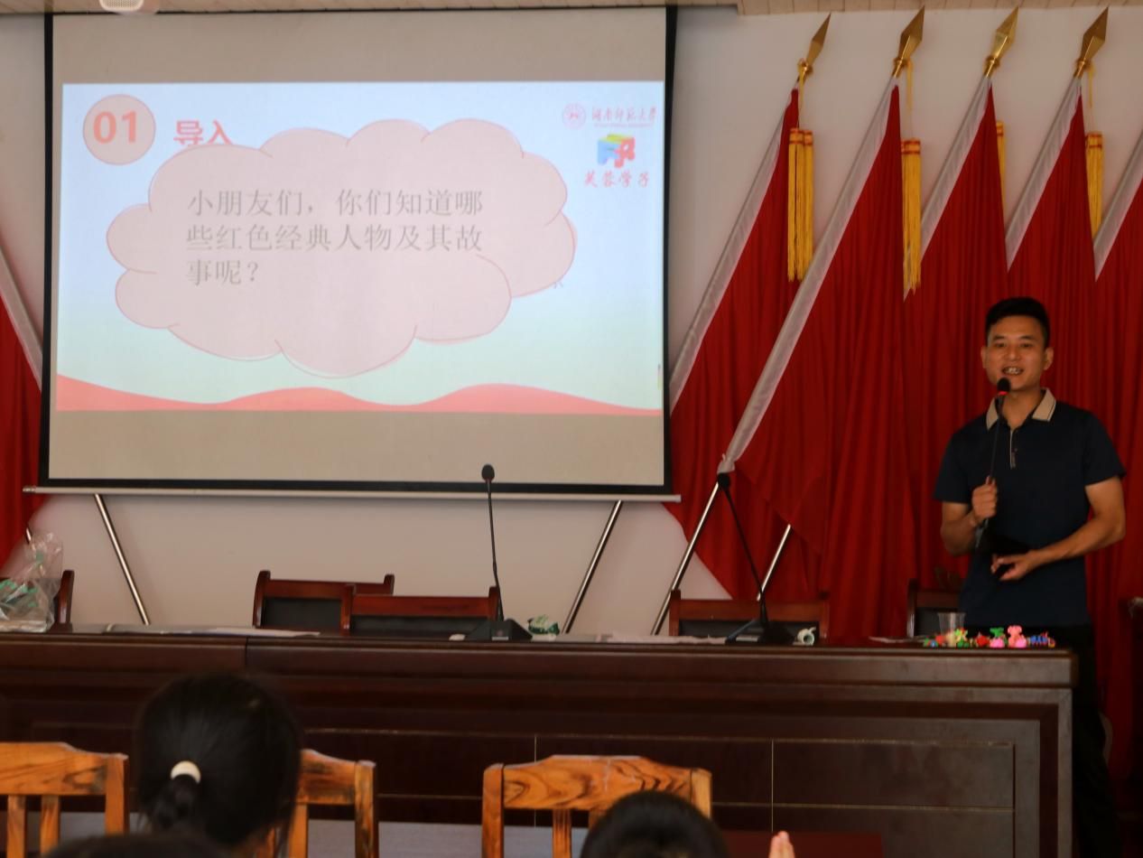 活动现场,周书记通过翻转课堂的方式让学生讲述红色故事,并通过介绍革命烈士,讲述革命故事,引导小朋友加深对革命历程以及红色文化的了解,激发大家热爱祖国、传承红色基因的情感。实践团成员带领孩子们观看红色视频,学唱红色歌曲。“我要以革命烈士邱少云为榜样,为国家富强贡献出自己的力量。”分享环节,超超小朋友骄傲地说道。