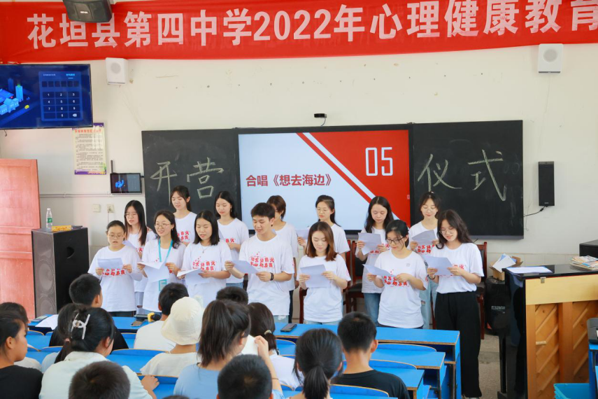 实践团成员组织观看“数言话薪火,红心助乡育”宣传视频。实践团成员及全体同学有序地进行自我介绍。五位成员表演舞蹈《稻香》,并分别用朝鲜语、西班牙语、英语朗诵诗篇《青春》。全体成员合唱歌曲《想去海边》。开营仪式的顺利开展,揭开了为期两周实践活动的序幕。