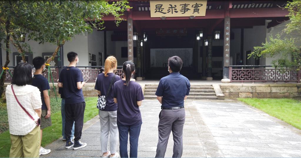 在岳麓书院“实事求是”匾额前,调研队成员领悟到实事求是治学精神中蕴含着的深厚湖湘文化渊源,体会到从事实出发、崇尚科学、追求真理的“经世致用”基因。在青年毛泽东曾寄住在岳麓书院的半学斋前,同学们了解到,1917年至1918年毛泽东同志两度游学,以脚步丈量大地,在国情民意中读“无字之书”的故事时,表示要不负时代重托,不负青春韶华,聚焦国家和地方发展需要,踏踏实实将论文写在祖国大地上,以谦和的心态、奋斗的姿态,努力成为新时代文化的传承者、摆渡者。