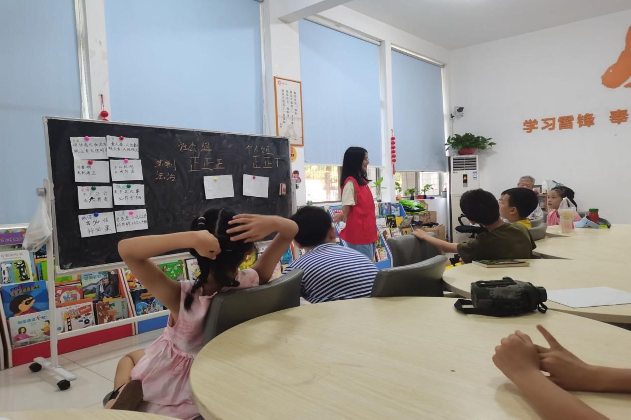 在“社会主义核心价值观解读”课堂上,曾芷君通过生活中的事例,结合课堂上常见的现象导入社会主义核心价值观,拉近了社会主义核心价值观与孩子们的距离,激发了孩子们观察生活,感悟生活,反思生活,热爱生活的兴趣。曾芷君表示,她最初接触社会主义核心价值观,正值中小学,和眼下的这群孩子一般大。当时她母校的一堵墙上,毛笔字泼染出的社会主义核心价值观挺拔有力,牵引着她的种种思绪。社会主义核心价值观源于生活,指导人生。二十四个字,三个维度,曾芷君引述名家名言,借用典型事例诠释着核心价值观蕴含的灵魂重量。在学习完核心价值观的内涵后,曾芷君和孩子们合唱了一首童谣,以孩子们喜闻乐见,容易接受的方式灌输理论知识,鼓励孩子们多多践行社会主义核心价值观,笃初诚美,慎终宜令。