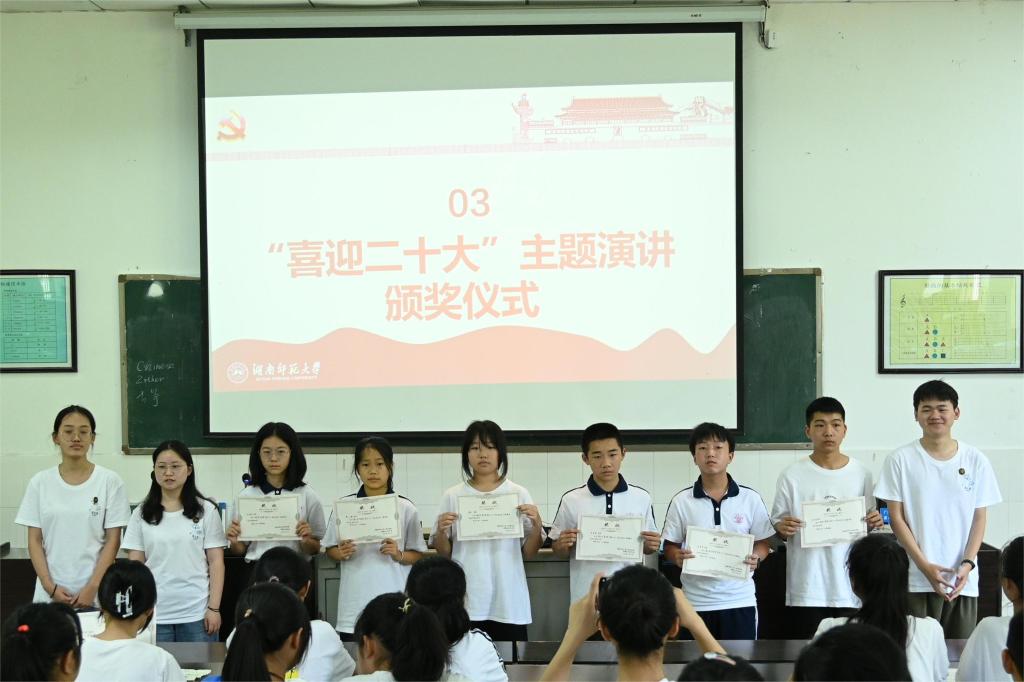 (通讯员 谢璐怡 龚佳倩 刘雨芹)7月15日,为党的二十大胜利营造良好的社会环境,发挥学校的特殊宣传作用,引导学生厚植爱党爱国情感,立志传承红色基因,努力成长为担当民族复兴重任的时代新人,九州最新登录网址“蒲公英”暑期社会实践团在资兴市第三中学的协助下开展了学生“喜迎二十大”党史主题演讲活动。