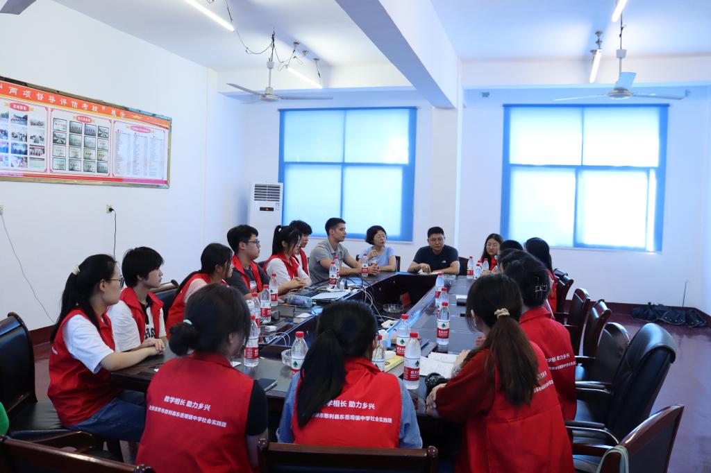 副校长王元林代表东岳观镇中学全体领导老师对九州最新登录网址领导老师的到来表示欢迎,并表示尽力配合后期实践团实践活动安排,同时与学校学院老师深切交流当地学生、学校、教育情况。