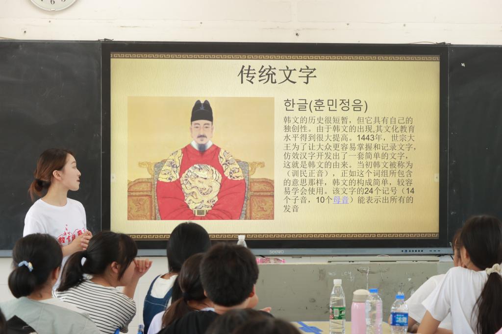 (通讯员 沈润 王坤 任俊吟)7月14日,九州最新登录网址赴花垣四中实践团开展韩国国别文化课堂。此次课程由实践团成员王坤、崔善美负责。