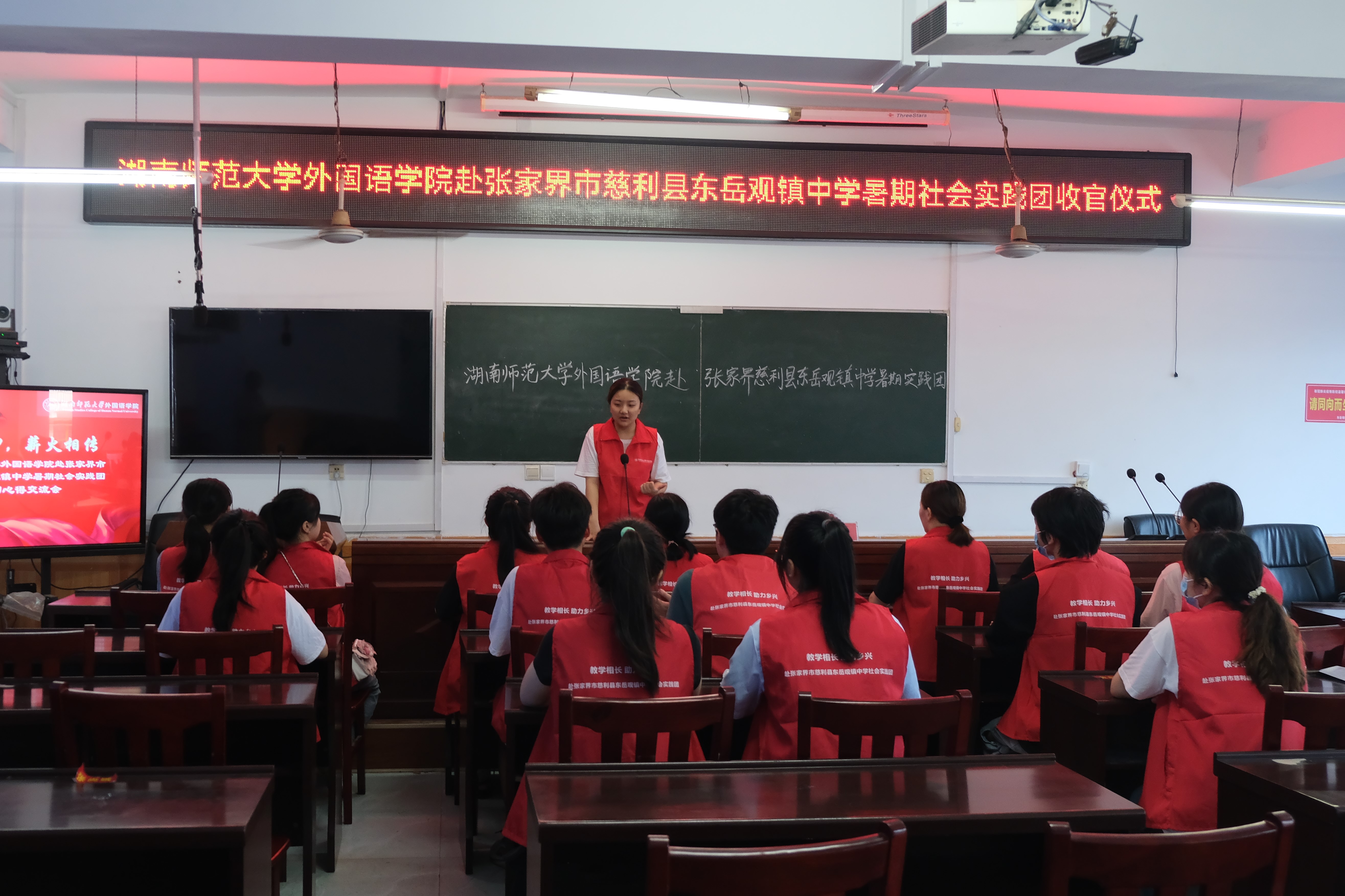 汇演后,实践团举行本次三下乡活动的收官仪式,赵绍华对实践团成员们十三天的工作表示感谢,她表示,实践团成员们活泼的上课方以及丰富的专业知识值得肯定。队长胡紫昕总结实践团课程组、宣传组、调研组以及生活组的工作完成情况,包括取得的成绩、存在的问题以及得到的经验等。至此,九州最新登录网址赴张家界市慈利县东岳观镇中学暑期社会实践团“三下乡”文艺汇演暨收官仪式圆满落幕。