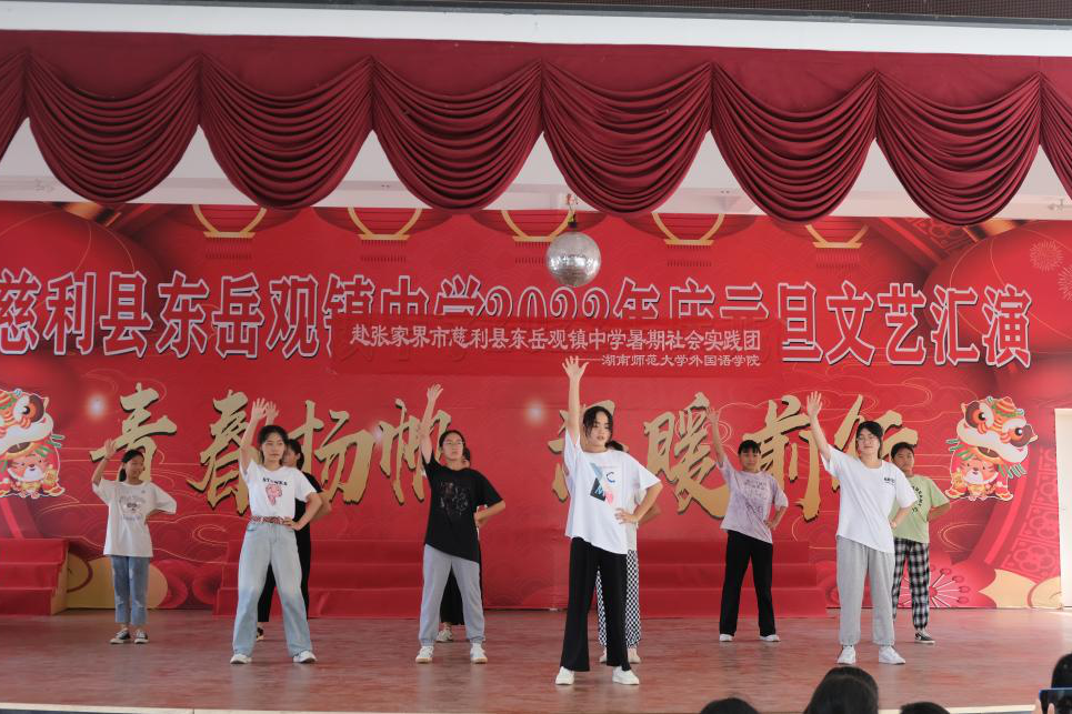 此次文艺汇演丰富了东岳观镇中学学生们的文化生活,同时,在一个个舞蹈、一首首歌曲中,表达了实践团成员和东岳观镇中学学生们对对祖国的热爱之情,也表达了我们对未来美好生活的向往与期待。